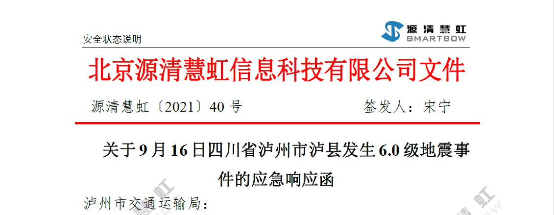 是夜,源清慧虹運(yùn)維部門在震后3分鐘收到瀘州橋隧群監(jiān)測系統(tǒng)的預(yù)警通知,第一時(shí)間通過瀘州橋隧群監(jiān)測系統(tǒng)查看所監(jiān)測的瀘州市境內(nèi)33座橋梁和2座隧道的結(jié)構(gòu)監(jiān)測指標(biāo)(傾斜、沉降、應(yīng)變、索力、振動(dòng)等)數(shù)據(jù),包括震中20公里內(nèi)的玉蟾山隧道、九曲河大橋、瀨溪河大橋等,并快速與瀘州市交通運(yùn)輸局、瀘州市城市管理和行政執(zhí)法局進(jìn)行溝通,及時(shí)了解橋梁/隧道現(xiàn)場情況,通過數(shù)據(jù)輔助分析災(zāi)害震情影響。源清慧虹秉承“應(yīng)急事件發(fā)生之后1小時(shí)內(nèi)提供應(yīng)急響應(yīng)函”的承諾,向?yàn)o州市交通運(yùn)輸局、瀘州市城市管理和行政執(zhí)法局等單位發(fā)送了應(yīng)急響應(yīng)函。