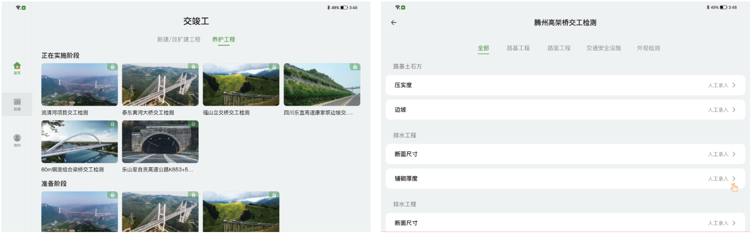 系統(tǒng)適用于交通基礎(chǔ)設(shè)施項目交竣工檢測、專項檢測等管理,將傳統(tǒng)人工記錄、線下審批、線下存檔升級為數(shù)字化錄入、電子化存檔、線上審批,全面提升管理效率。